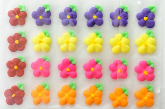 24 Icing Flowers with Leaves (mixed)