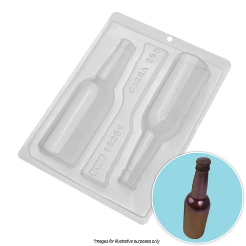This is a 3 piece mould which you push together to make an empty chocolate shell. You can also use the outer mould only to make a solid chocolate bottle.