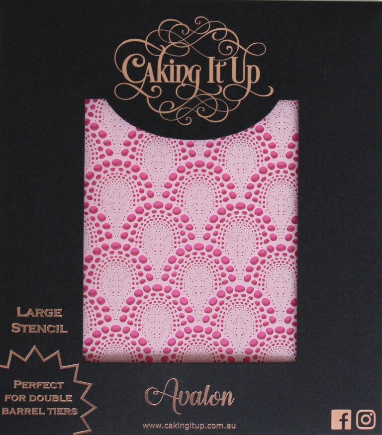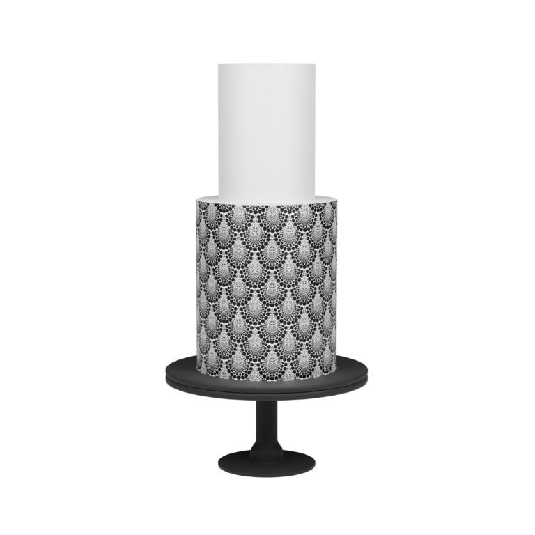 Add some texture and depth to your creation with this cake stencil. Perfect for double barrel cakes and taller tiers, the stencil pattern area is almost 9 inches high, saving you time and creating a seamless effect from top to bottom. This pattern looks amazing when used with a white on white effect, but also stunning when used with contrasting colours