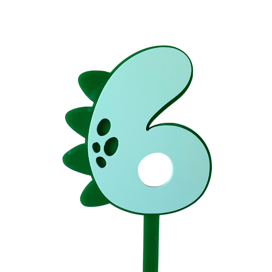 Add a number to your cake with a fun dinosaur feel to it! Mint green on the front with a leaf green background.