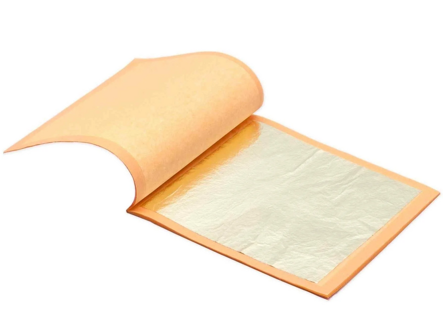 Book of 5 transfer sheets of edible gold leaf sheets. Each sheet is 8cm x 8cm
