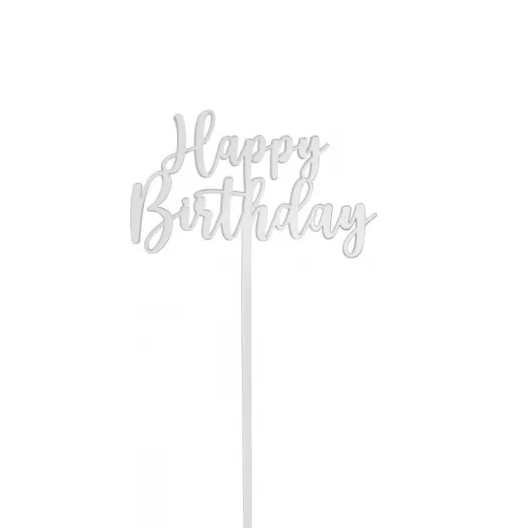 Go Bake Happy Birthday Cake Topper - Classic Silver