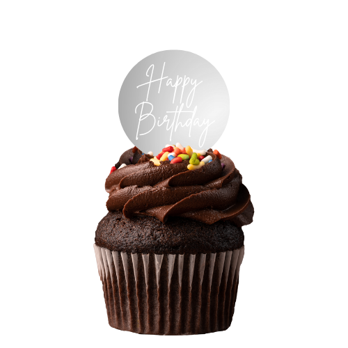 CW Happy Birthday Script Plaque Cupcake Topper - Silver