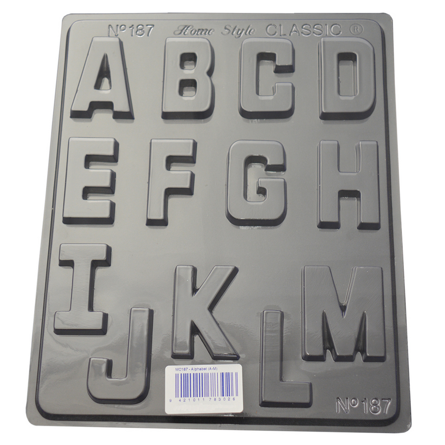 Letters are 3-3.5cm tall, and take 10-14g of melted chocolate each