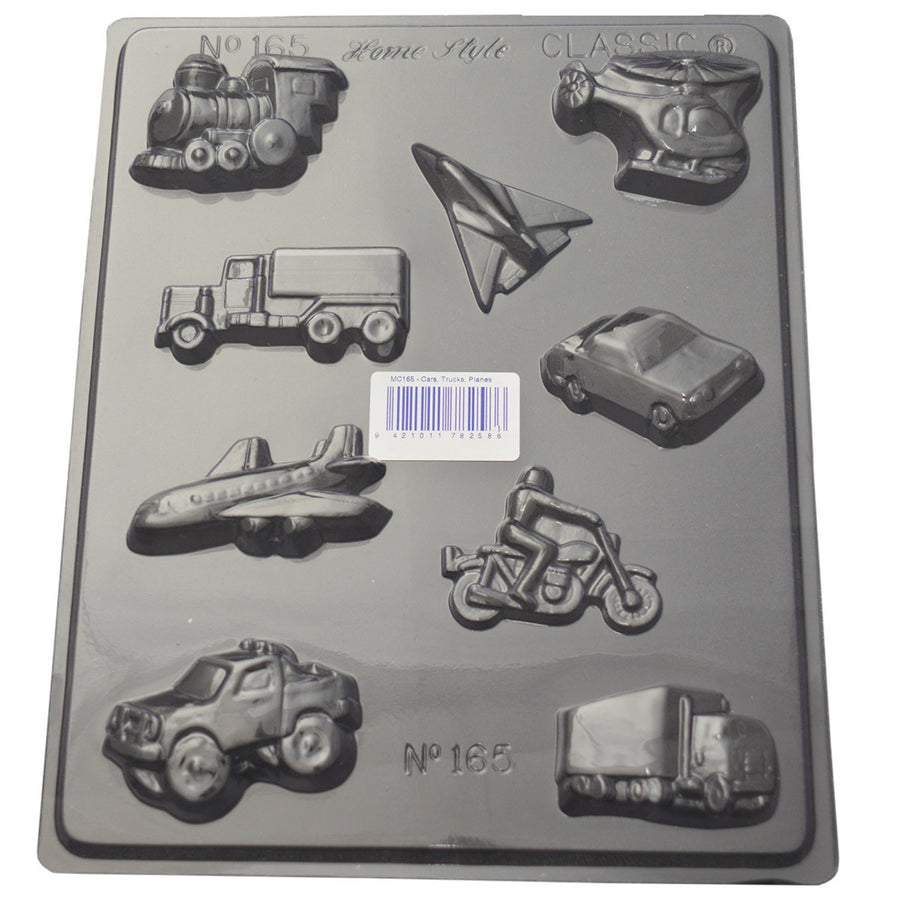 Includes one each: train, helicopter, jet, dump truck, car, plane, motorbike, monster truck, truck.