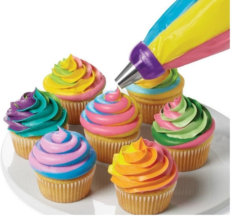 The ColorSwirl 3-Color Coupler seamlessly blends 2-3 color icings as you pipe. Choose from double swirl or triple swirl colors. The interlocking coupler pieces connect multiple decorating bags, allowing you to swirl 2 or 3 colors together with one simple piping motion.