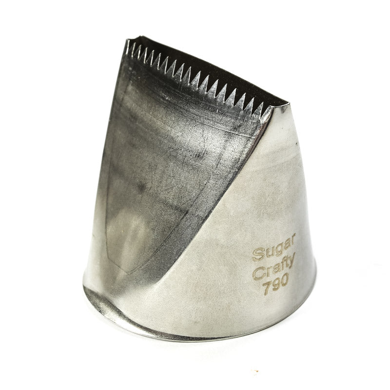 This tip has a smooth and ribbed side. You can use this tip to pipe buttercream onto your cake, avoiding needing to do a crumb coat.