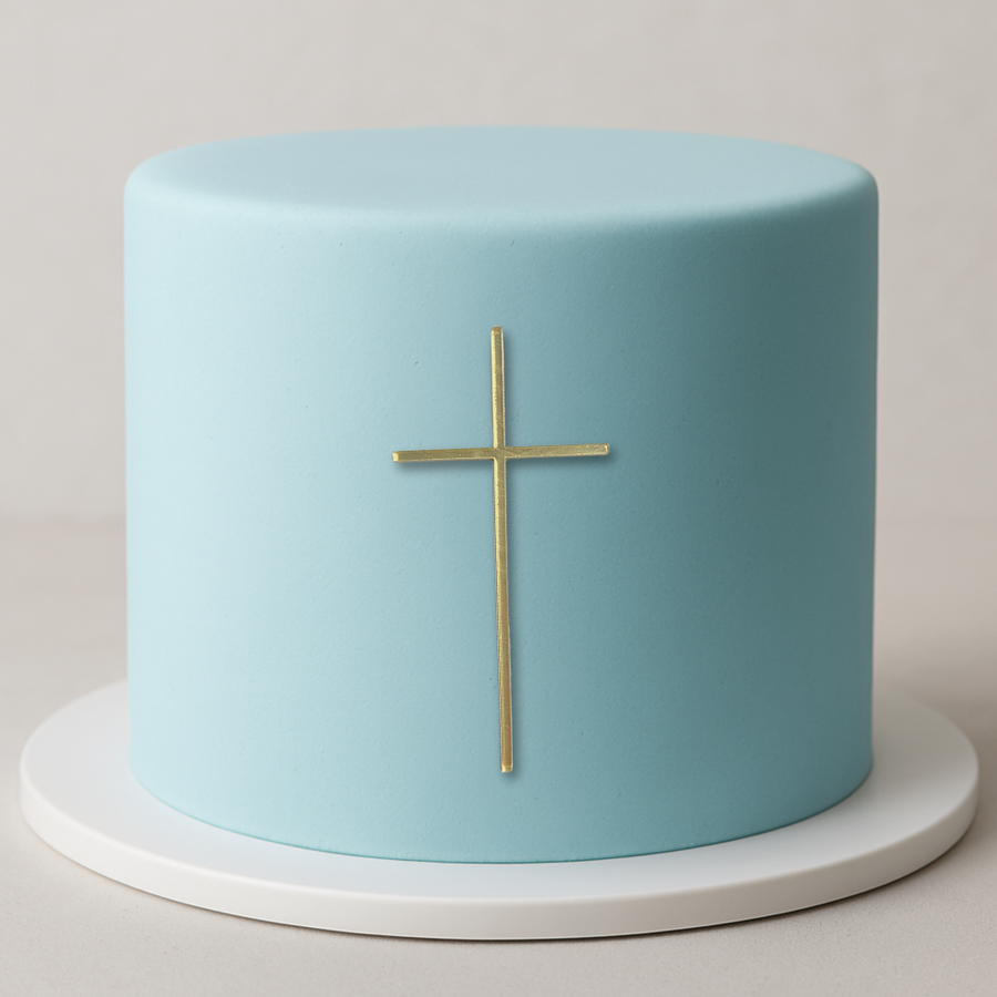 This gold acrylic cross is a simple way to finish off cakes for christenings, baptisms, communions or Easter. It’s made from 3mm acrylic, stands 10cm tall, and has a smooth, mirror gold finish that catches the light without being over the top.