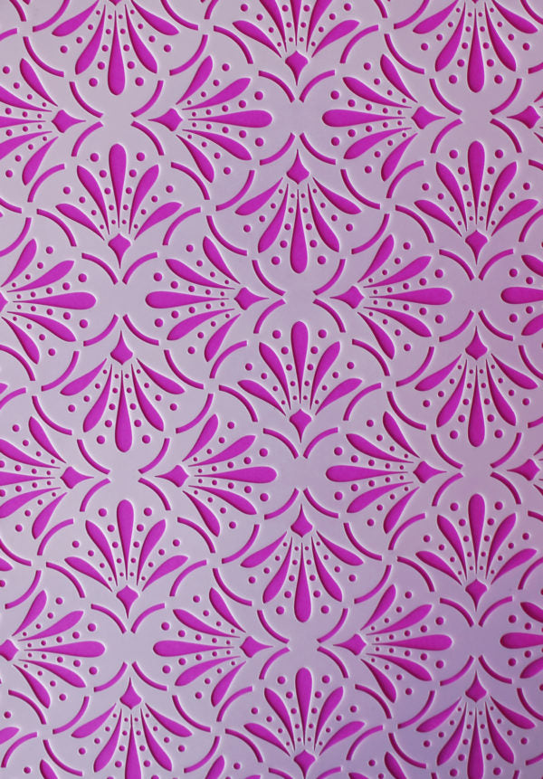 Add some texture and depth to your creation with this cake stencil. Perfect for double barrel cakes and taller tiers, the stencil pattern area is almost 9 inches high, saving you time and creating a seamless effect from top to bottom. This pattern looks amazing when used with a white on white effect, but also stunning when used with contrasting colours.