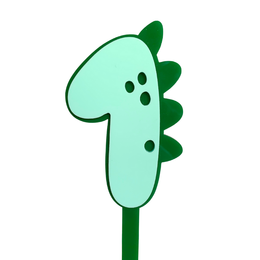 Add a number to your cake with a fun dinosaur feel to it! Mint green on the front with a leaf green background.